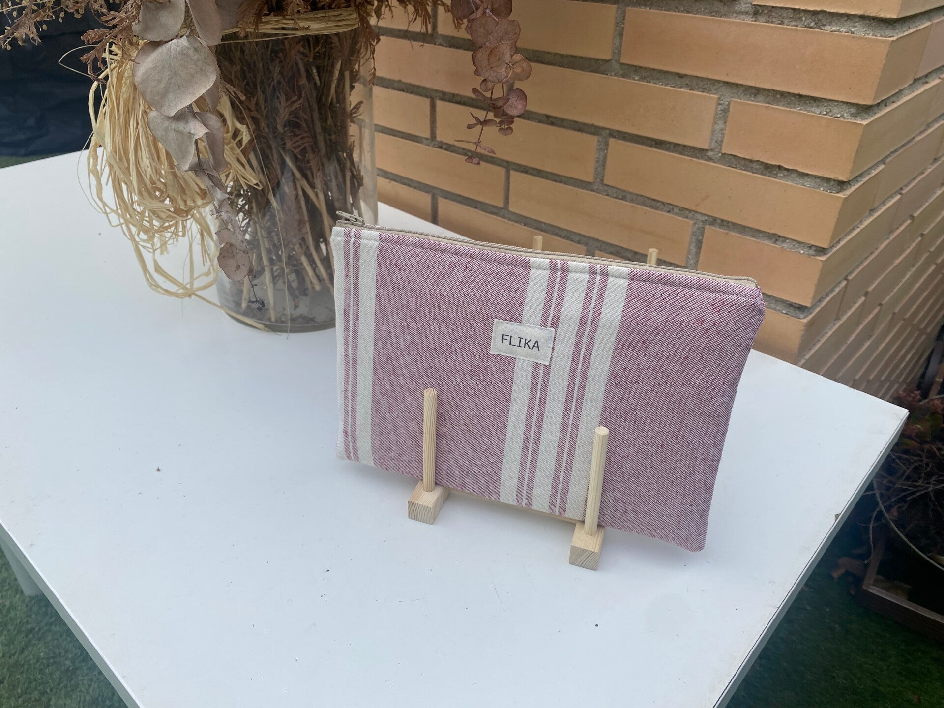 Bolso de mano o neceser plano rayas rosa