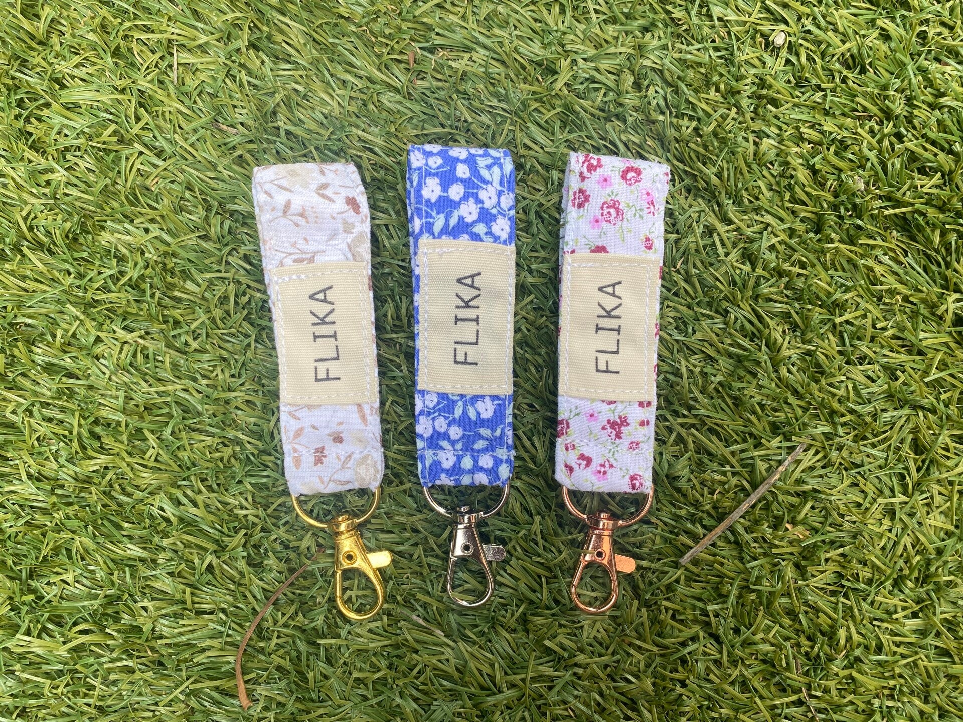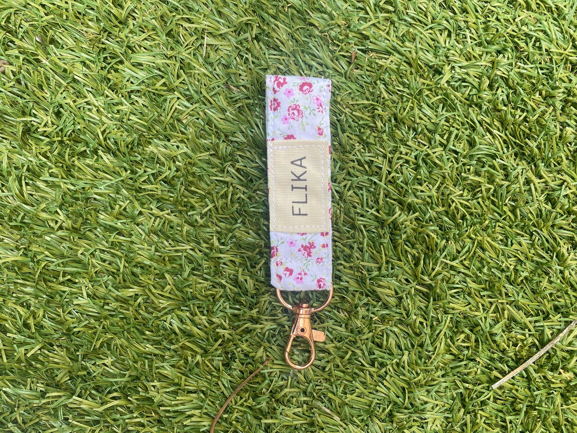 Llavero flores granates y verdes