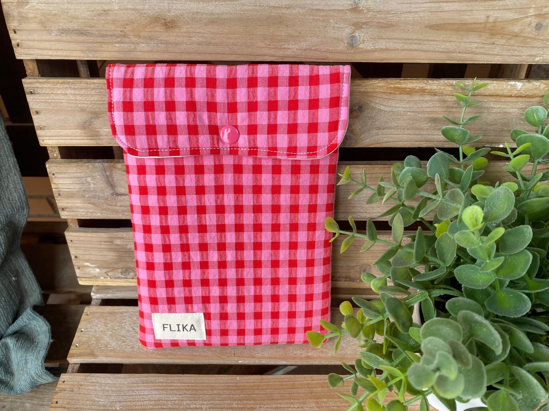 Funda de Kindle vichy rojo y rosa fosforito