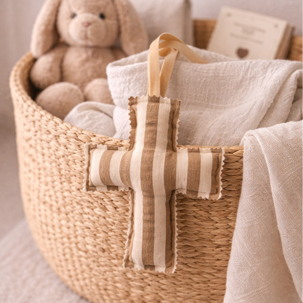 Crucecita rayas marrones y blancas